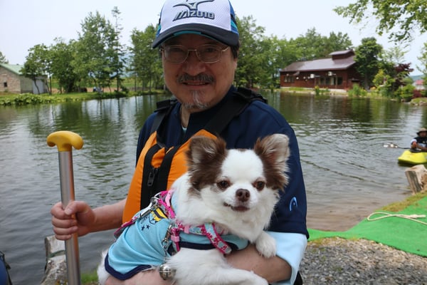 1歳と5歳の子供たちと、チワワも一緒にラフティング体験です。