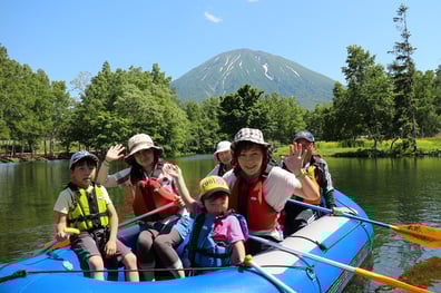 0歳から参加OK!湧水の池での「のんびりラフティング体験ツアー」です。ペットもOK。写真や動画もサービス♪
