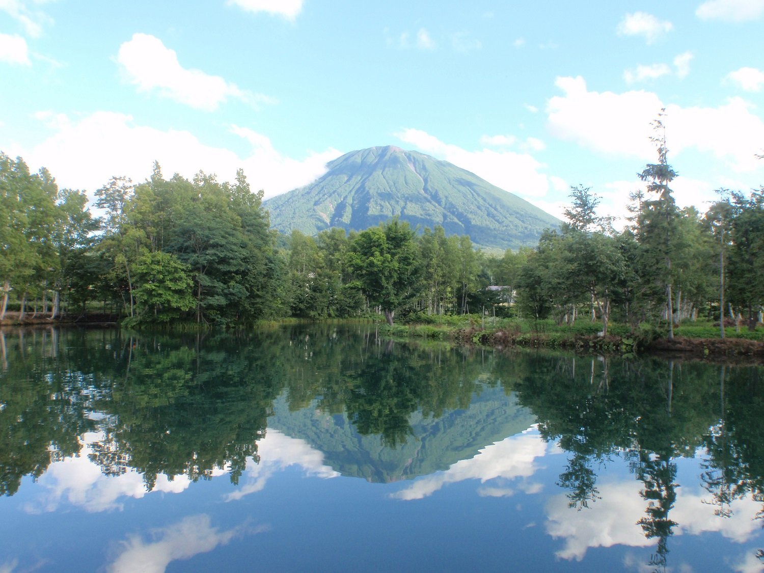 体験場所は羊蹄山ビュースポット。湧水は水深3mの底が見えるほどの透明度です。お魚も見えますよ。