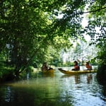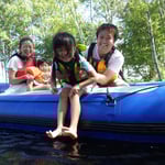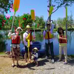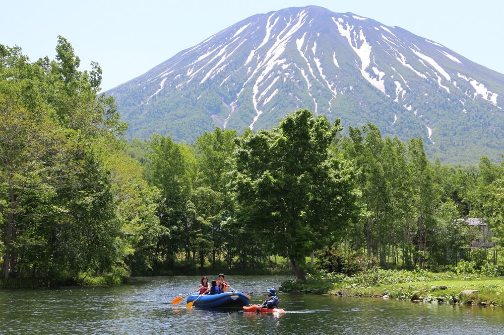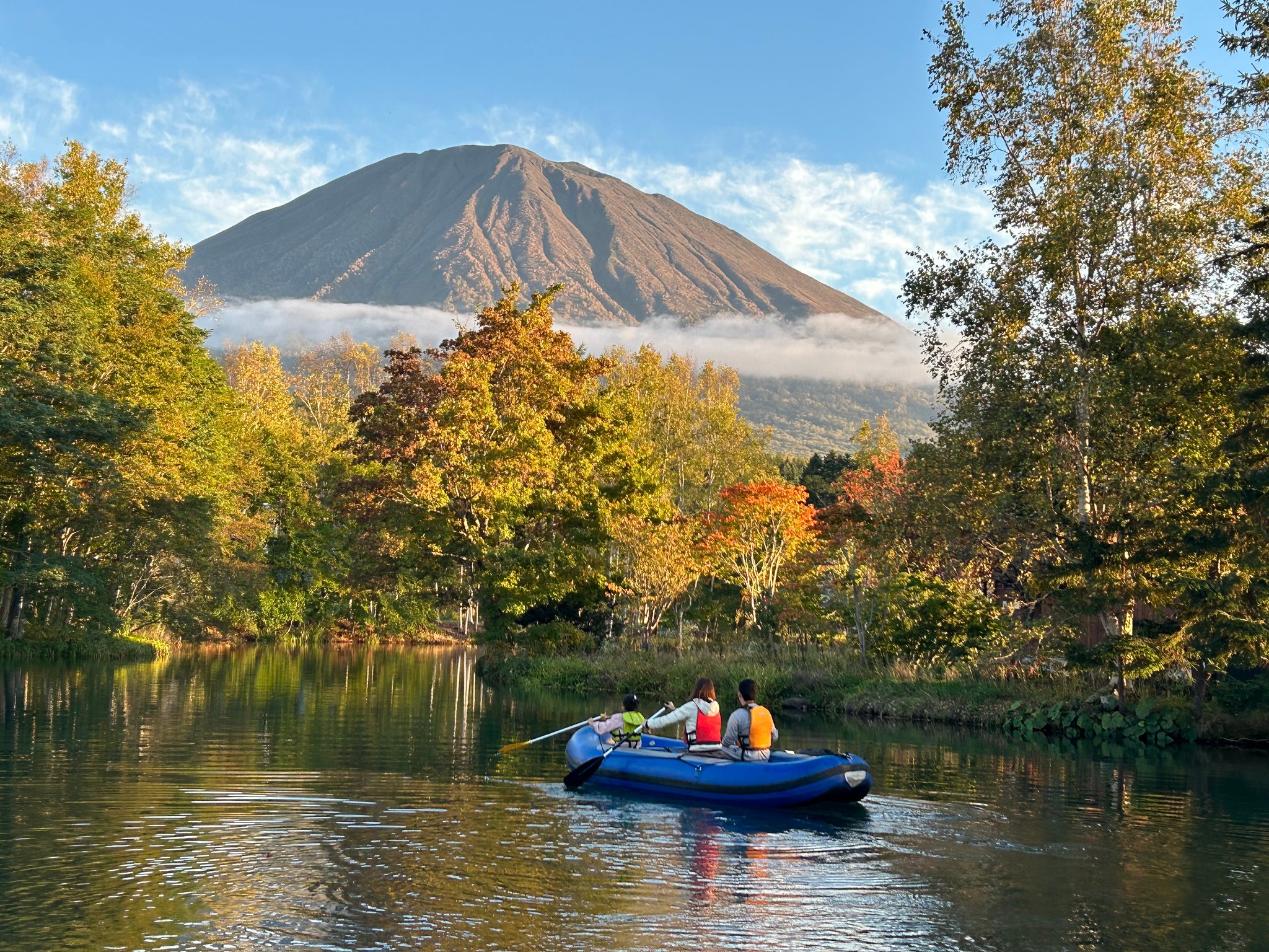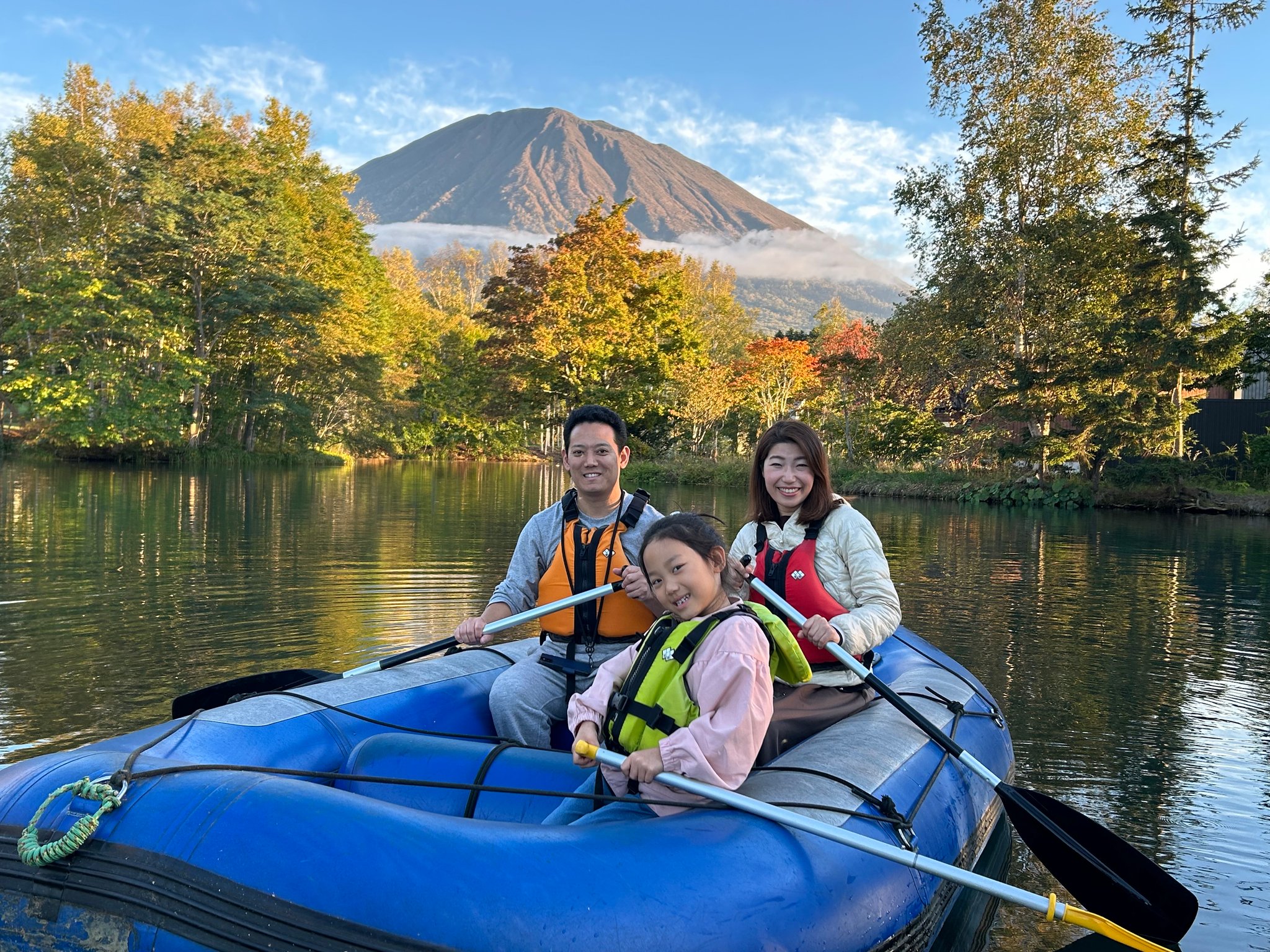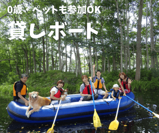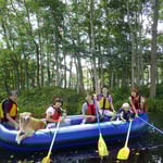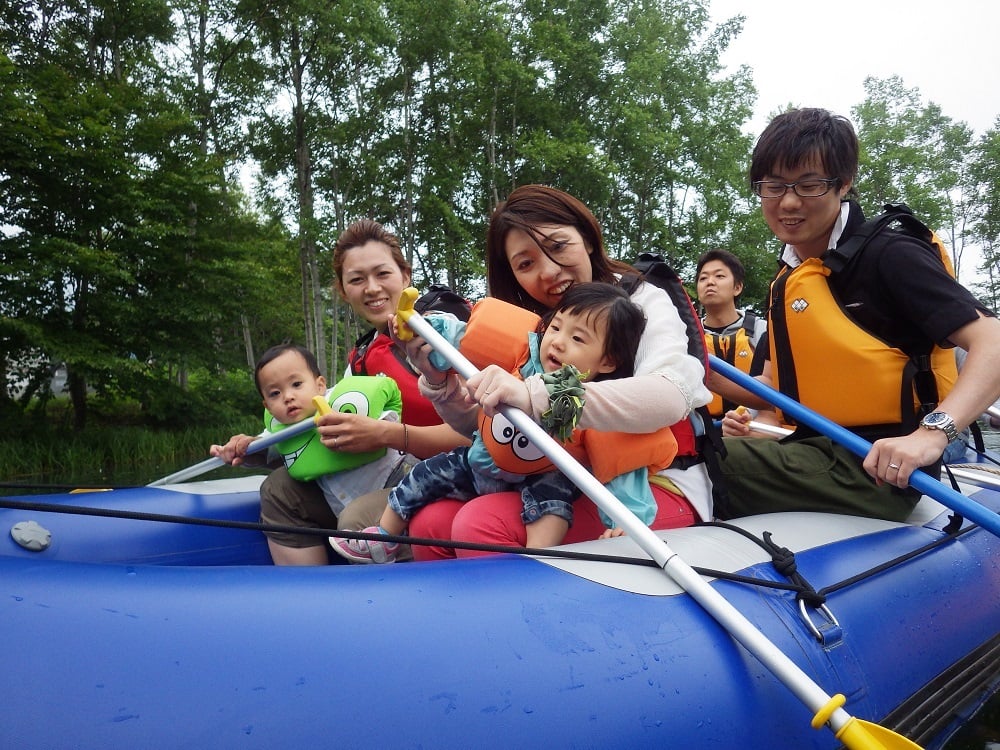 0歳から参加可能。ガイドありの湧水の池でのラフティングツアー。